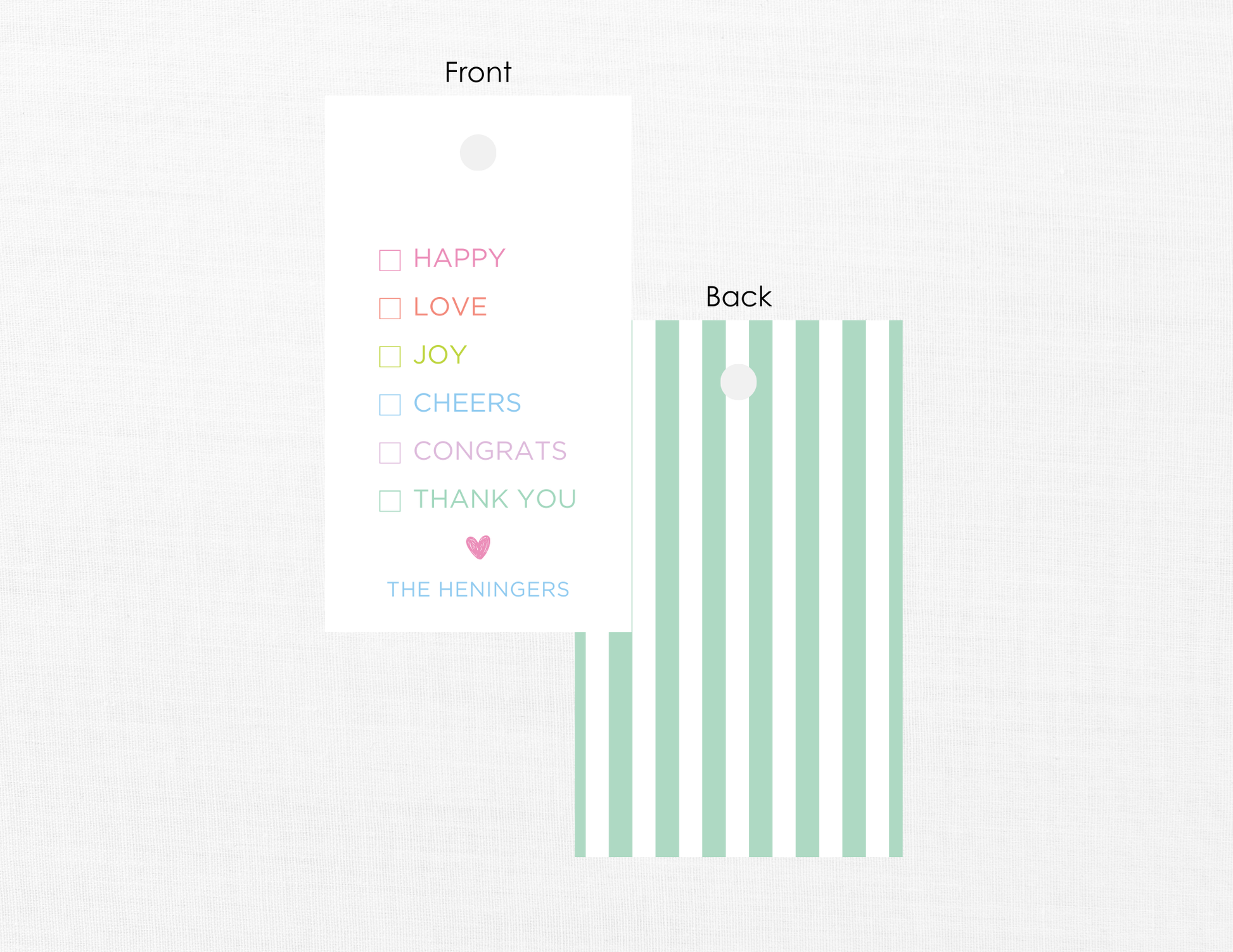 Overview: Add a playful, personal touch to your gifts with our Family Gift Tags. These custom-designed tags feature a modern, colorful layout that makes your presents instantly recognizable. With your family name and individual names included, these tags turn every gift into a delightful expression of your family's unique personality.